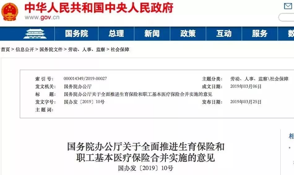 3月25日,国务院办公厅发布了《国务院办公厅关于全面推进生育保险和职工基本医疗保险合并实施的意见》(以下简称《意见》)。《意见》明确,生育保险基金并入职工基本医疗保险基金,统一征缴,统筹层次一致,而且合并要在2019年底前实施。