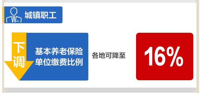 按照《政府工作报告》要求,为落实从5月1日起各地可将城镇职工基本养老保险单位缴费比例从原规定的20%降至16%等降低社保费率部署,会议决定: