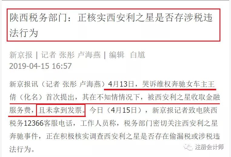 而在4月13日,根据新京报的消息:奔驰女车主首次提出,其在不知情情况下,被西安利之星收取金融服务费,且未拿到发票。